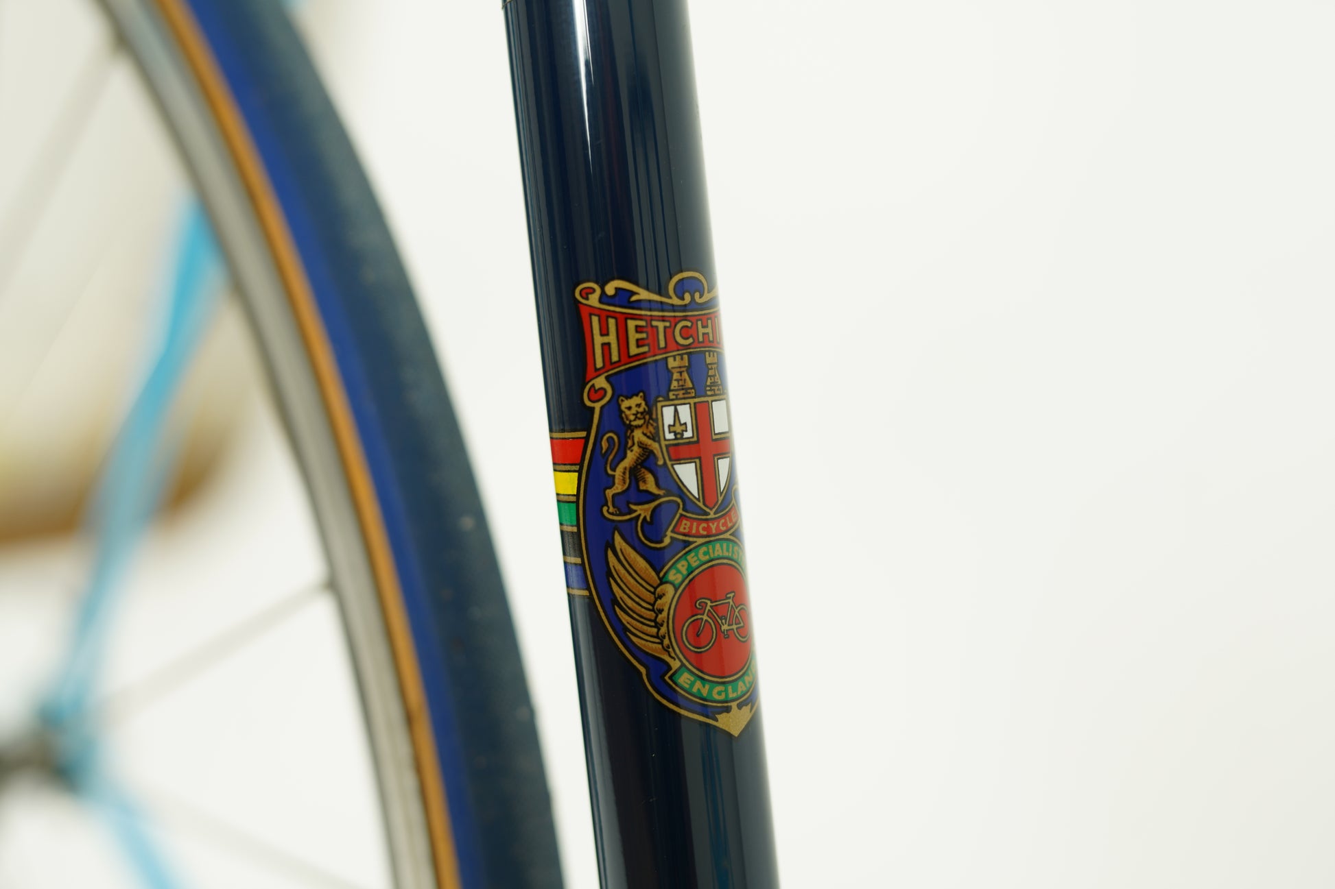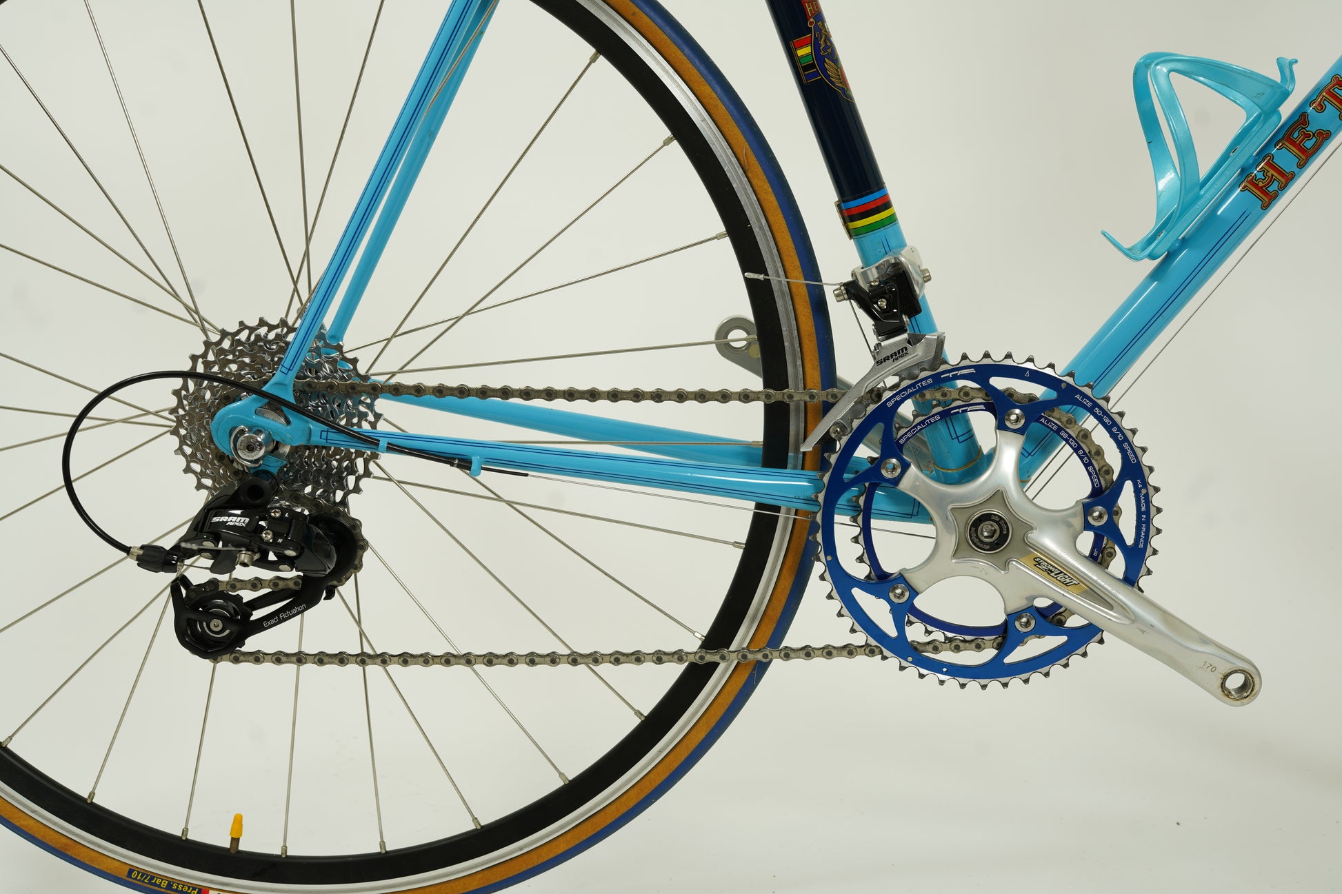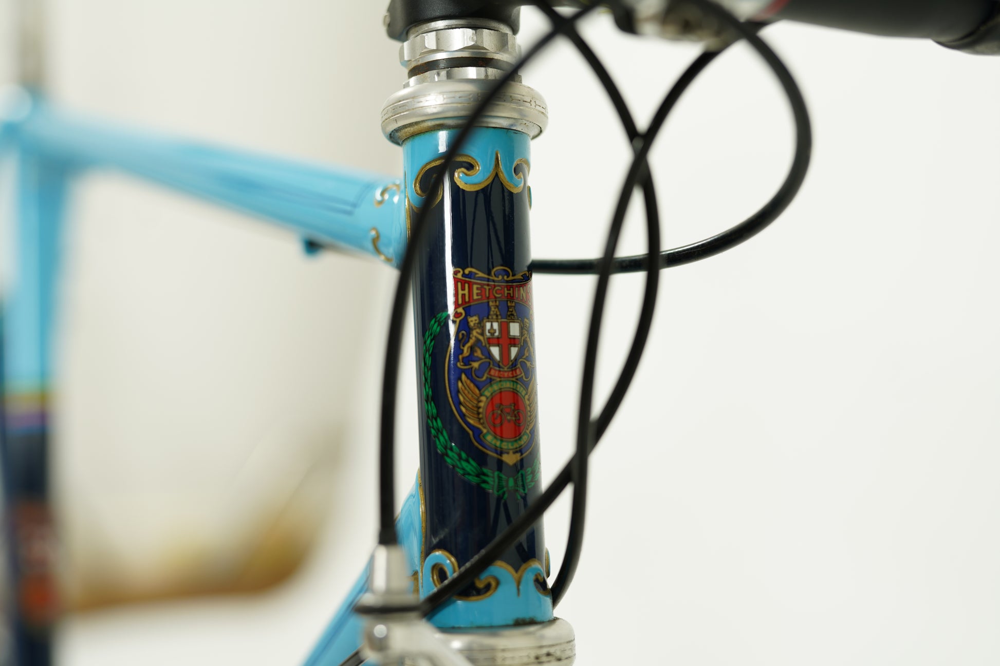 Gorgeous baby-blue Hetchins road bike with clean pantograph detailing and ornate lugwork.